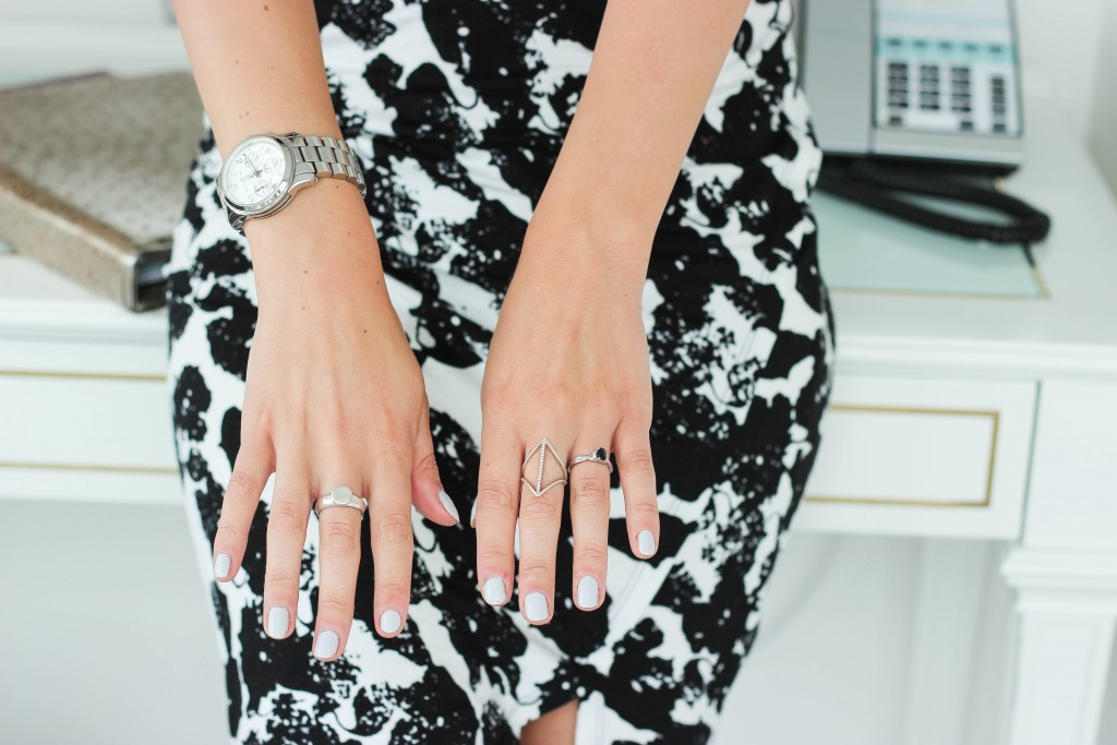 What I’m Wearing: Oasis midi dress, Zara pointy flats (similar here), Michael Kors silver watch, Assorted silver rings (similar here)